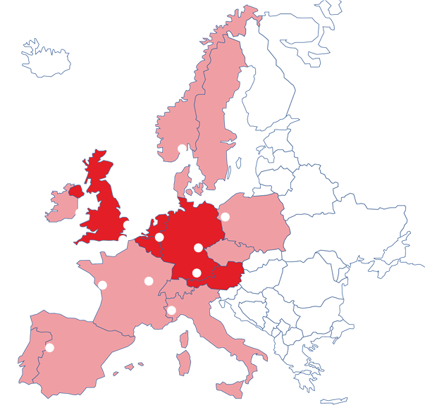 Tussen Nederland, België, Duitsland, Oostenrijk en Groot-Brittannië